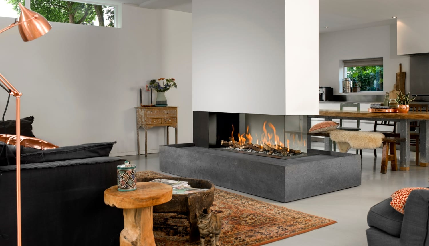 Details maken het verschilVoor de achterwand en/of zijwand kan gekozen worden uit een vlakke stalen wand of zwart keramische spiegelwand. Er is keuze uit maar liefst drie verschillende kader varianten. Naast het Hidden Door - en het Hidden Door+ 10 cm. kader kunt u kiezen voor een kaderloze variant.Excentrisch rookgas afvoerHet aansluitpunt van de rookgas afvoer van de Room Divider 3 bevindt zich excen- trisch. Hierdoor kan het concentrisch kanaal worden weggewerkt in de achterwand, waardoor de bovenzijde van de haard kan worden open gelaten voor een ruimtelijk effect en is vuur zichtbaar, direct vanaf de achterwand.