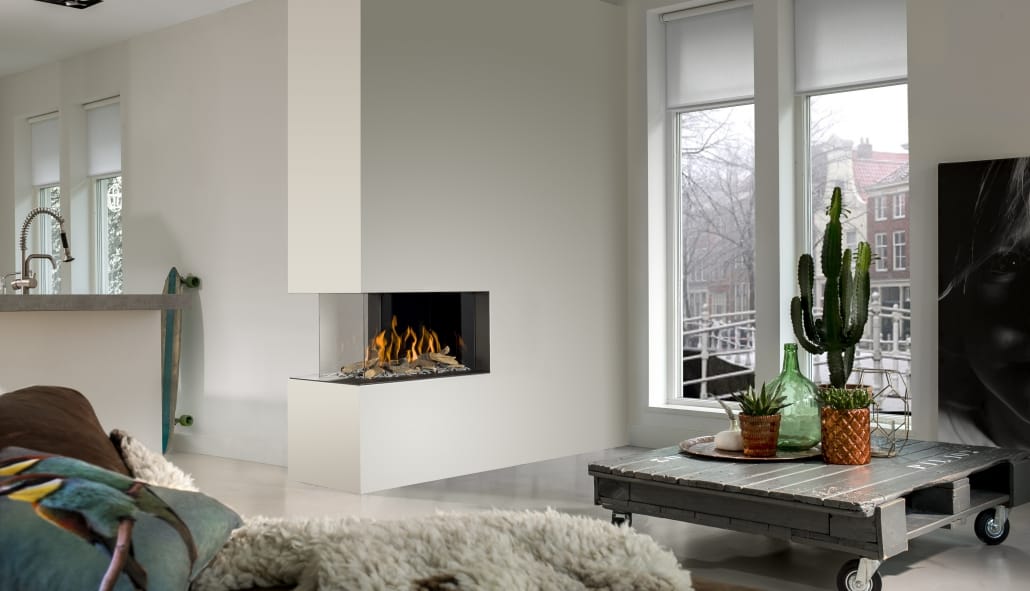 Details maken het verschilVoor de achterwand en/of zijwand kan gekozen worden uit een vlakke stalen wand of zwart keramische spiegelwand. Er is keuze uit maar liefst drie verschillende kader varianten. Naast het Hidden Door - en het Hidden Door+ 10 cm. kader kunt u kiezen voor een kaderloze variant.Excentrisch rookgas afvoerHet aansluitpunt van de rookgas afvoer van de Room Divider 3 bevindt zich excen- trisch. Hierdoor kan het concentrisch kanaal worden weggewerkt in de achterwand, waardoor de bovenzijde van de haard kan worden open gelaten voor een ruimtelijk effect en is vuur zichtbaar, direct vanaf de achterwand.