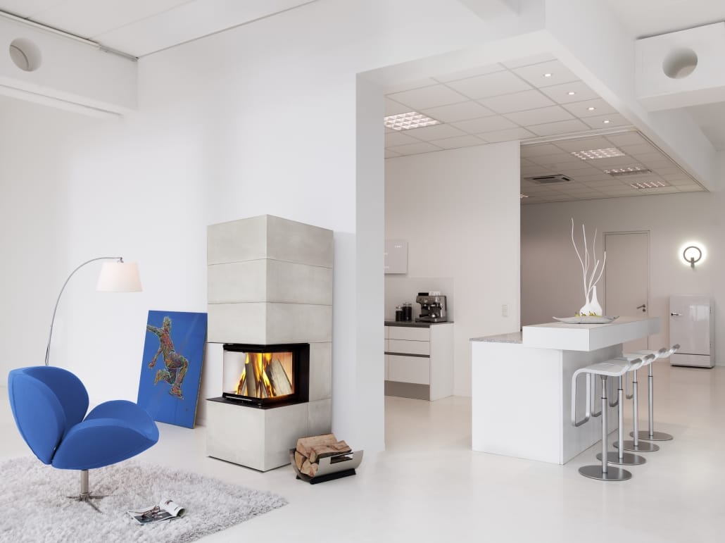 Brunner BSK 10 ombouw met de BRUNNER 42/42/42/42 Panorama liftdeur haard. De accumulerende systeemhaard is gemaakt van warmtebeton en past naadloos in elkaar. Een snelle opbouw en functionaliteit, dat zijn de voordelen van de BSK ombouwen.