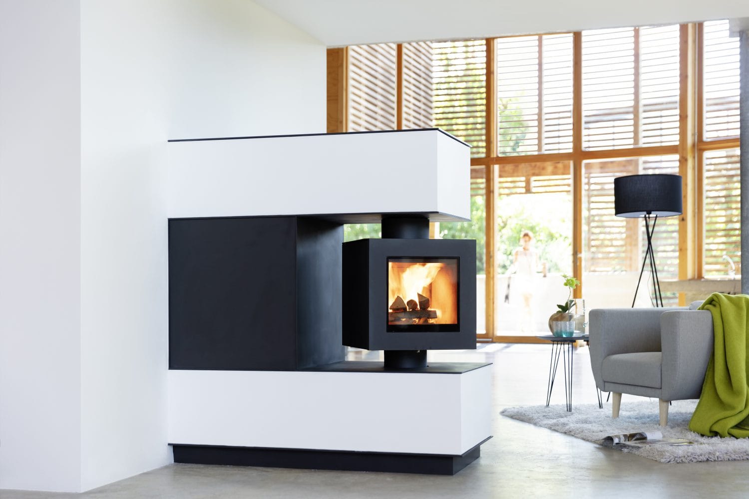 Een gietijzeren haard van 50 bij 50 centimeter die eenvoudig met de hand of met een afstandsbediening naar elke gewenste positie is te draaien: dat is de nieuwe Draai Vuurhaard DF 33, een unieke haard met verschillende warmteopslagmodules van Brunner, de Duitse producent van hoogwaardige kwaliteitshoutkachels. Veel vuur, liefst te zien van verschillende kanten, niet te hoge warmteafgifte én een hoog rendement: het is allemaal gecombineerd in de Draai Vuurhaard DF 33, een kachel met een slimme warmteverdeling en grote glasruiten. Draaibaar vuur, slimme warmteverdeling. De Draai Vuurhaard DF 33 is een boven en onder gelagerde gietijzeren kubus, die eenvoudig via een bedieningshendel met de hand naar de gewenste positie kan worden gedraaid. Optioneel is een afstandsbediening beschikbaar. Het vermogen van 6-7 kW wordt verdeeld over verschillende warmteopslagmodules: 50% direct via de gietijzeren kubus en 50% indirect en vertraagd door de keramische opslagmodule of als convectiewarmte via een warmtewisselaar. Dat maakt de haard met name ook geschikt voor kleinere ruimtes. Eventueel kan de geavanceerde verbrandingscomputer van Brunner, de EAS, worden toegepast voor de meest optimale & schone verbranding.