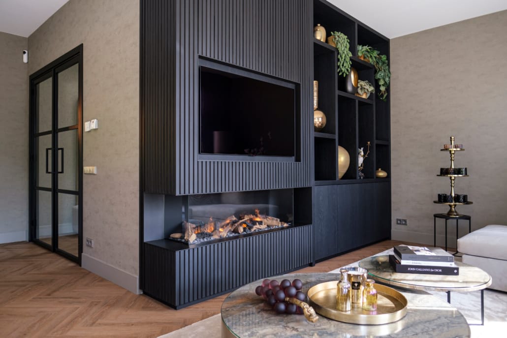 De E-MATRIX 1300-400 III is een elektronische haard die elegantie en ecologie samenbrengt in uw leefruimte. Als waterdamp haard is deze niet alleen een duurzame keuze maar ook een visueel pronkstuk dat een rustgevend, vlamachtig effect biedt zonder schadelijke emissies. De ingetogen luxe van de bijpassende kastenwand, eveneens uit onze collectie, complementeert de haard en biedt zowel stijl als functionaliteit. Het geheel ademt een sfeer van doordachte finesse, waarbij het vuur en meubilair in harmonie samensmelten om een warm en uitnodigend huiselijk tafereel te creëren.