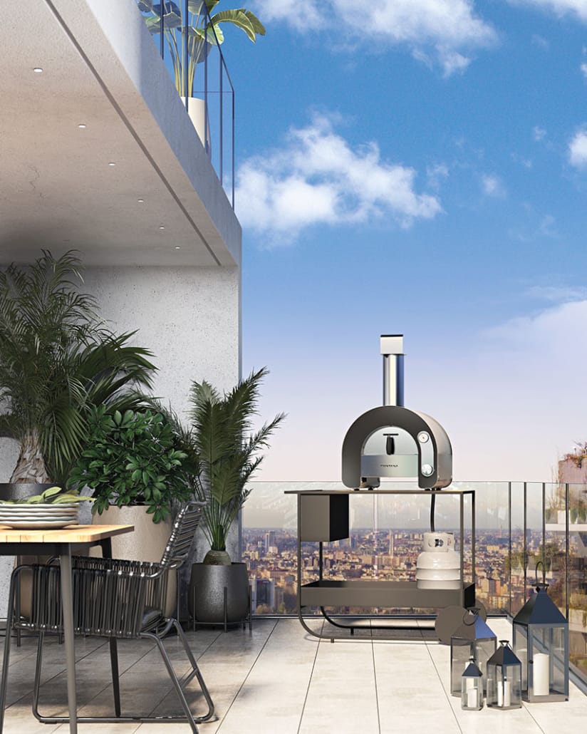 Integreer deze pizzaoven als in je buitenkeuken, neem hem mee naar de camping of zet hem op een verrijdbare trolley op je dakterras of gewoon op het zonnigste plekje van je tuin.