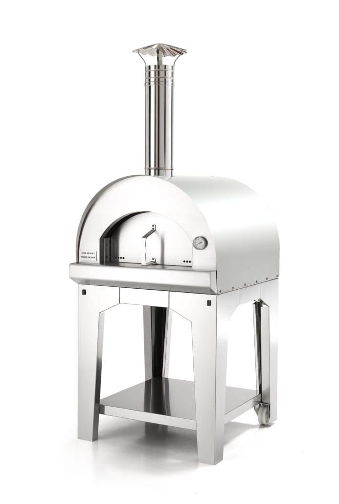 De Margherita is een compacte houtgestookte pizzaoven met trolley van roestvrij staal en een bodem van keramische stenen, ontworpen voor de bereiding van perfecte pizza’s. De keramische bakvloer heeft een afmeting van 60×60 cm en is in slechts 30 minuten deze opgewarmd tot 400 graden Celsius, de ideale temperatuur om in een mum van tijd echt Italiaanse pizza’s op tafel te toveren.