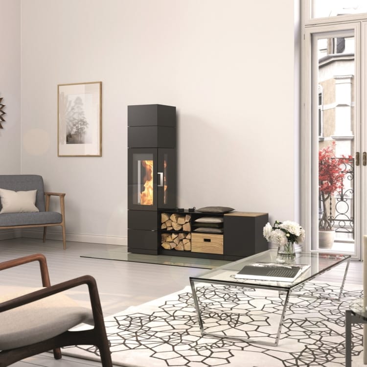 Het uitgekiende design bevat een liftdeur die comfortabel naar boven opent. Een grote verbrandingsruimte met veel ruimte voor een prachtig vlammenspel. Dit maakt de prestigieuze Padua houtkachel uniek. De bijpassende opslagmodule biedt niet alleen voldoende ruimte voor het hout, maar biedt ook ruimte voor een zijdelingse aansluiting op het rookkanaal. De handgemaakte keramiek in twee structuren en geselecteerde kleuren geeft deze bijzondere houtkachel een exclusieve uitstraling. Een accumulatie pakket voor meer warmteopslag is optioneel te bestellen. De Padua is leverbaar in twee hoogtes.