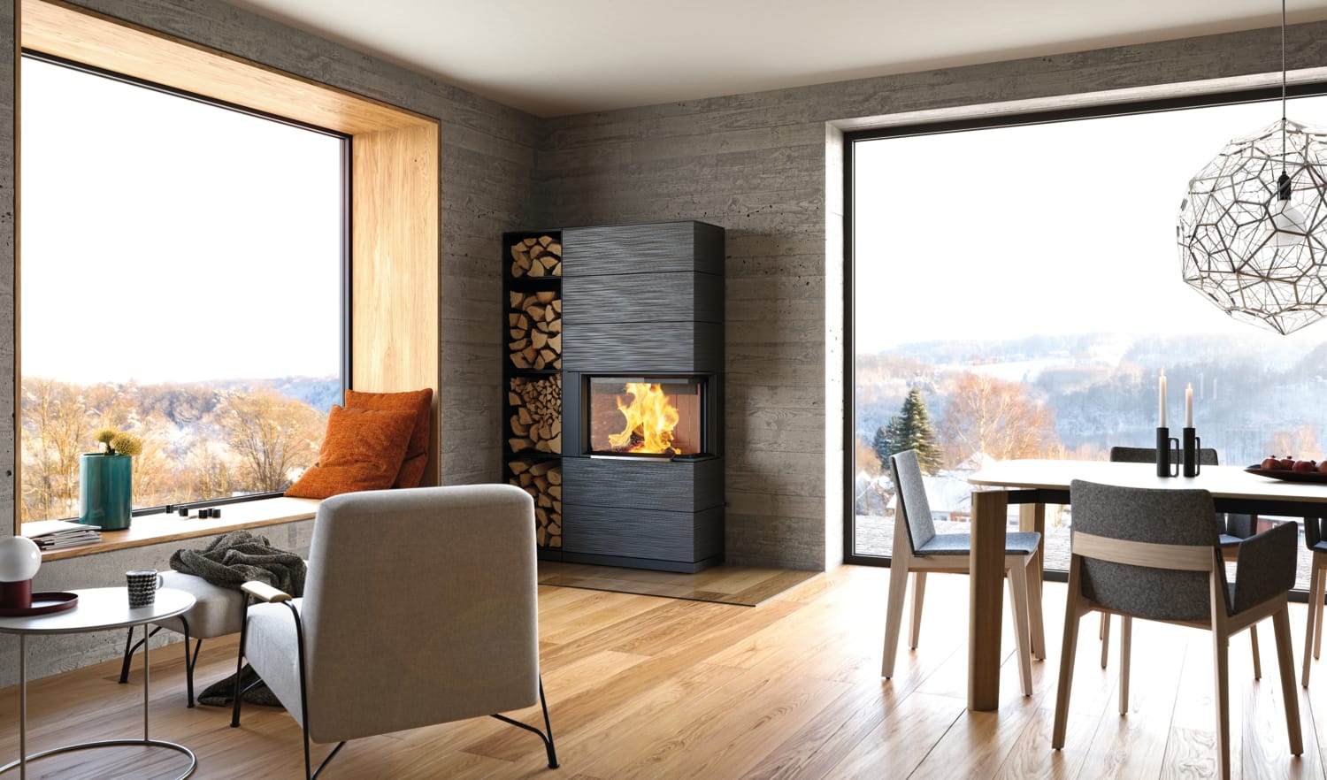 Het uitgekiende design bevat een liftdeur die comfortabel naar boven opent. Een grote verbrandingsruimte met veel ruimte voor een prachtig vlammenspel. Dit maakt de prestigieuze Padua houtkachel uniek. De bijpassende opslagmodule biedt niet alleen voldoende ruimte voor het hout, maar biedt ook ruimte voor een zijdelingse aansluiting op het rookkanaal. De handgemaakte keramiek in twee structuren en geselecteerde kleuren geeft deze bijzondere houtkachel een exclusieve uitstraling. Een accumulatie pakket voor meer warmteopslag is optioneel te bestellen. De Padua is leverbaar in twee hoogtes.