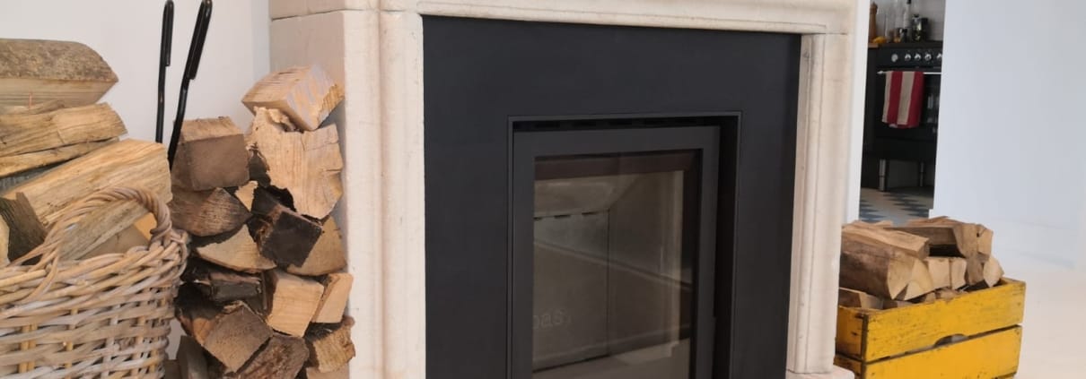 De openhaard in deze klassieke schouw hebben wij vervangen voor hout-inzethaard. Tegelijkertijd werd het oude rookkanaal vervangen voor een geïsoleerde variant. Minder brandstof, hoger rendement, fijne warmte, meer comfort. Maar bovenal een fijne plek om te genieten van een mooi vlammenspel.