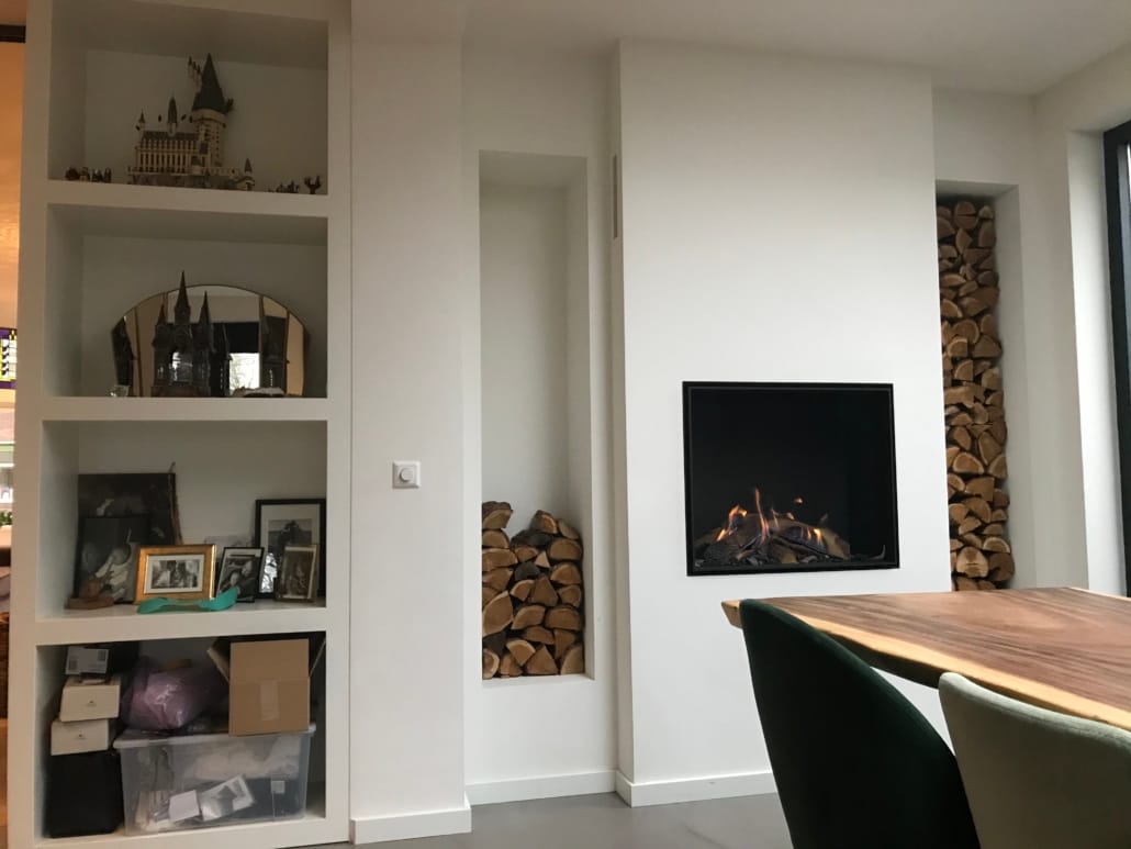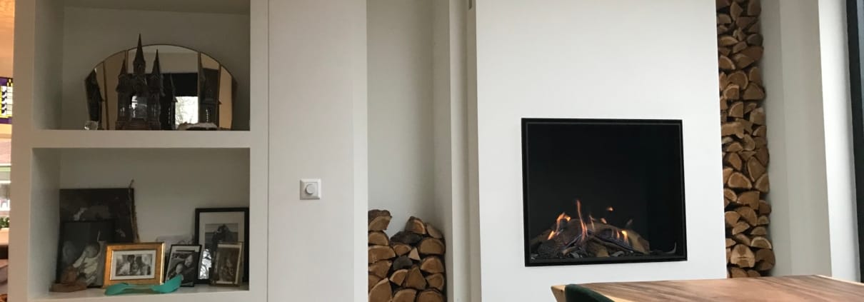Voor Marco en Roos realiseerde wij deze gashaard van Bellfires in hun stijlvolle nieuw aangebouwde woonkeuken.