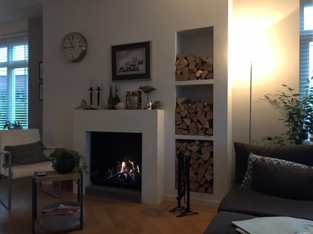 In Heiloo bouwden de Pieter Jan en zijn gezin een prachtig familiehuis waar wij deze gashaard van Bellfires mochten plaatsen, de nissen gevuld met haardhout, de moderne schouw gedecoreerd dit alles geeft een sfeervol eind resultaat.