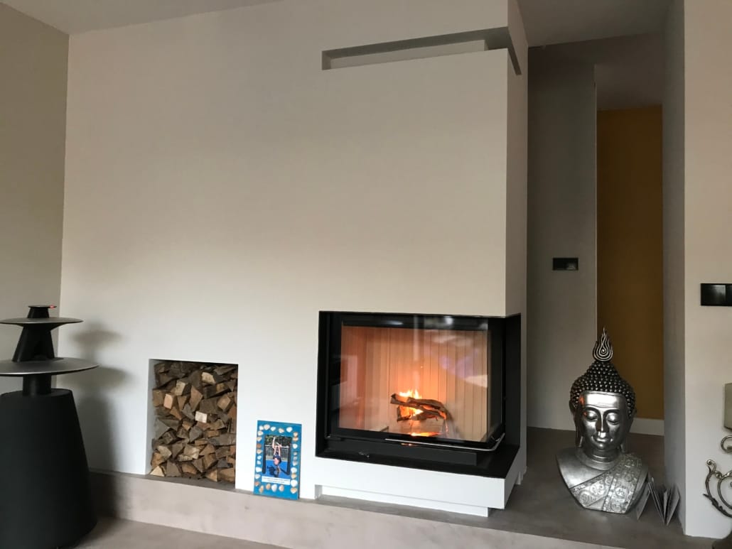 Voor Marc en Renske realiseerden wij deze prachtige Brunner hout liftdeurhaard opstelling.