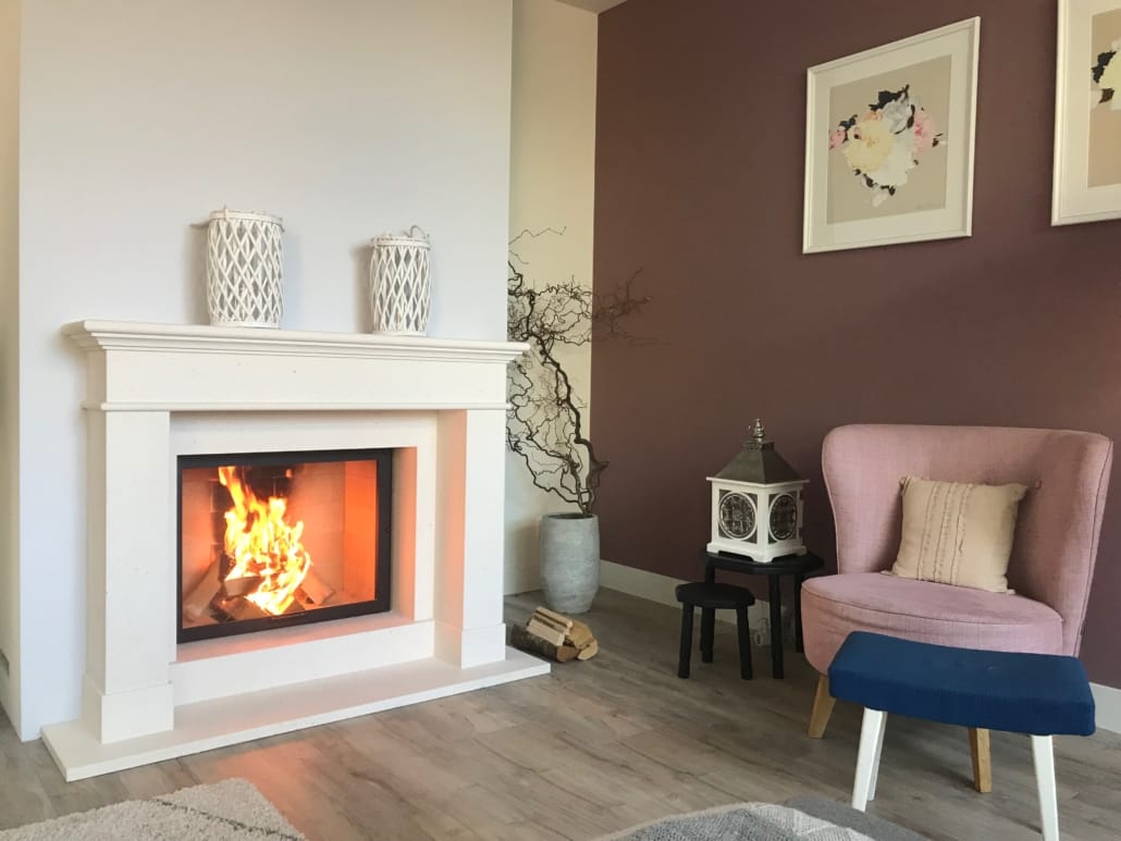 Voor Erik & Katja mochten wij deze prachtige haard opstelling verzorgen. Een liftdeurhaard Frontaal 800 van Totem ingelijst in een prachtige natuurstenen schouw van Pierres d’Henri in de steensoort New Capri gezoet . Prachtig!